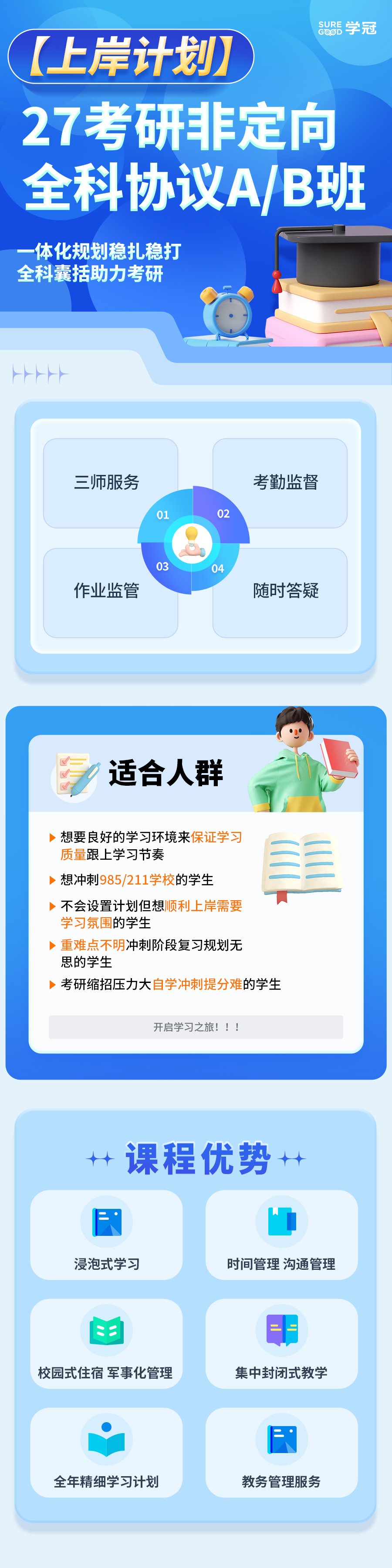 【上岸计划】27考研非定向全科协议A/B班-学冠教育