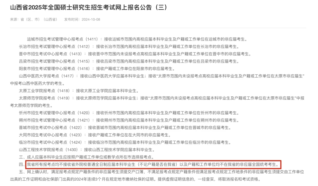 但有些省份明确规定不接受省外院校的应届生参加考试,无论户籍是否在本省(例如山西省、黑龙江省等)。这个需要大家查看相应省份的网报公告,了解报考点具体要求。