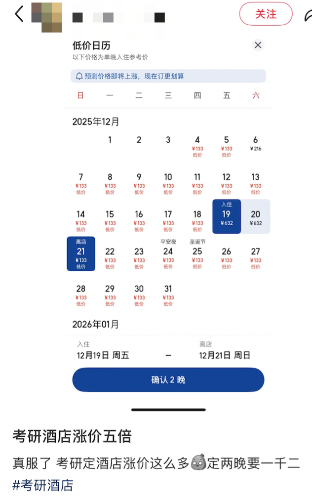 26考研咨询活动才刚刚结束,但小编看到,考研报名还没开始,酒店价格已经“起飞”了!