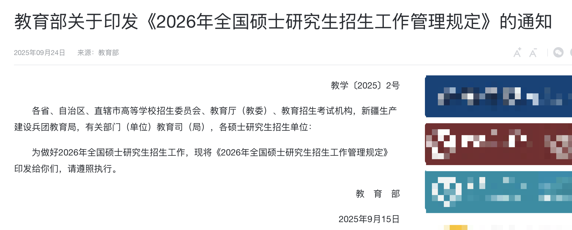 与此同时,教育部也同步发布了「2026年全国硕士研究生招生工作管理规定」,让我们对26考研招生的相关工作有了大概的了解