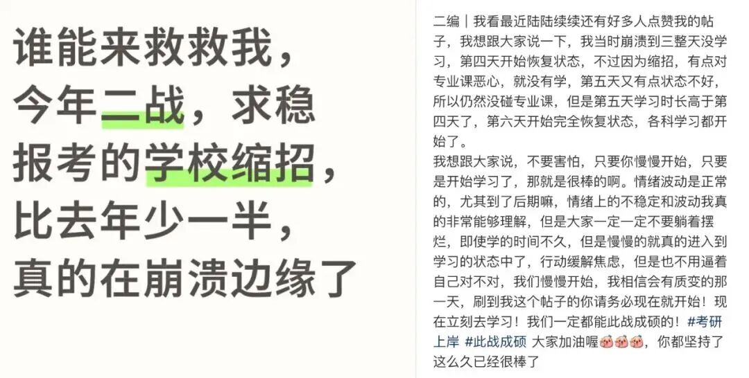无意在传递焦虑,但是最近已经到了考研弃考的高峰期,有的同学索性放弃复习决定二战,有的同学去找工作(但又处处碰壁),距离初试满打满算也不过1个多月的时间,沉没成本已经投出。现在放弃不是及时止损,是无谓的逃窜(在目标院校没有缩招也没有更换科目的情况下)。