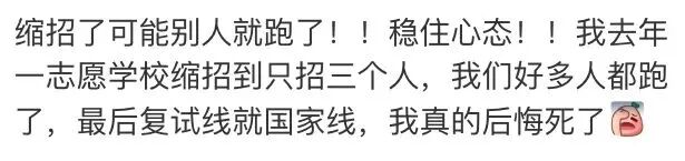 我们对缩招这件事的恐慌主要来源于【名额的减少】,数字小幅度的缩减可以接受,但是如果招生人太少(不管有没有缩招),很容易让人产生【放弃】的念头。