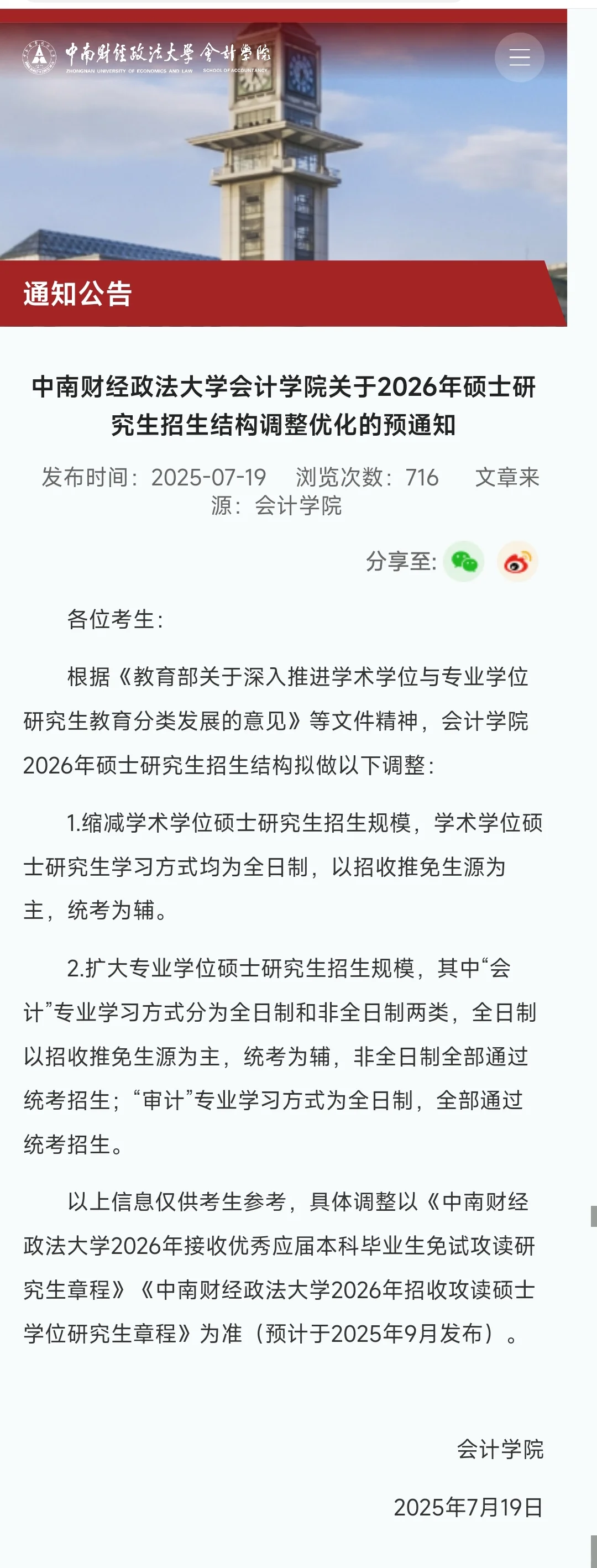中南财经政法大学826会计学硕缩招,估计今年该校该专业的热度会下降。