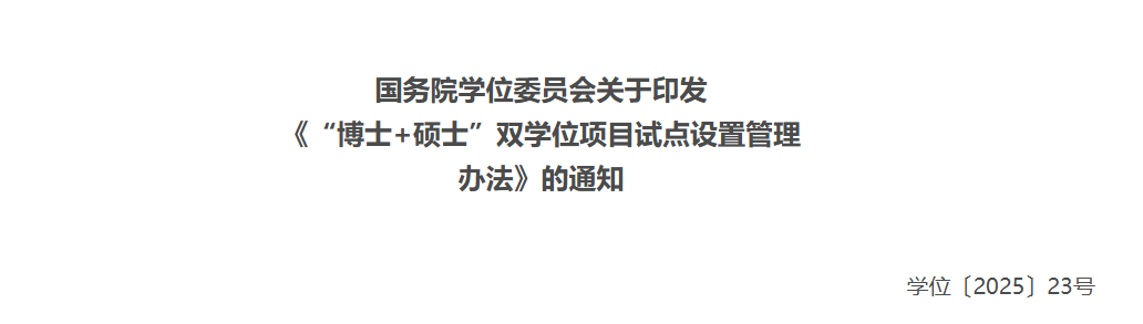 今天,教育领域传来一则重磅消息——国务院学位委员会正式印发《“博士+硕士”双学位项目试点设置管理办法》(以下简称《办法》)。