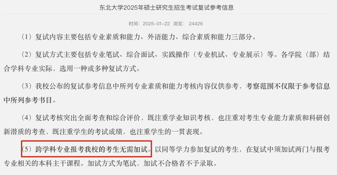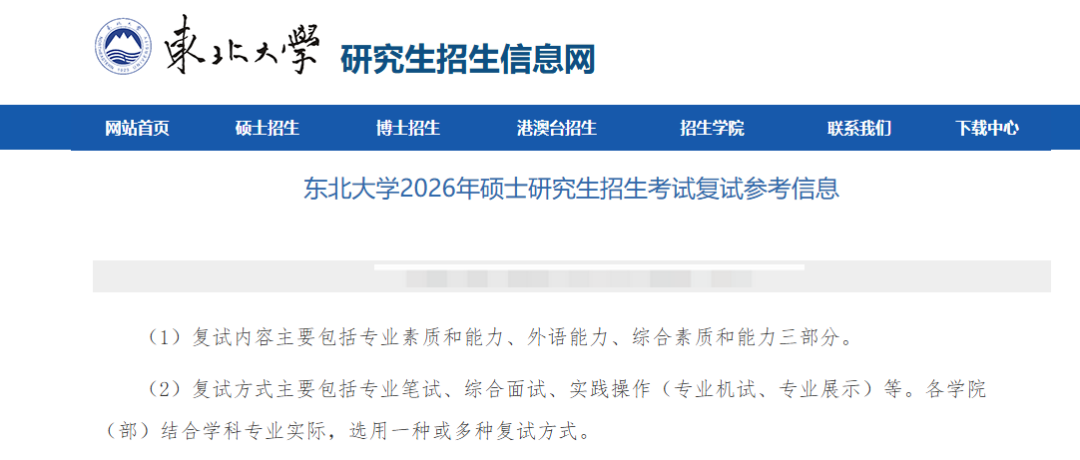 通过东北大学公布的《2026年硕士研究生招生复试参考信息》,可以看到: